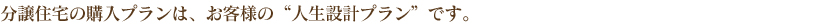 分譲住宅の購入プランは、そのままお客様の“人生設計プラン”です。これは住宅を販売する側が、常に自分のこととしてしっかりと心掛けなければいけないことだと考えています。